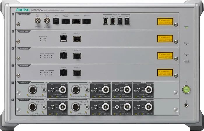MT8000A是一款用于射频、协议、波束测试及波束赋形评估的一体化测试平台。除了支持模拟开发5G芯片和终端所需的SA与NSA模式的基站功能之外,它还支持最新技术,如用于增加FR1频段数据传输速度的2CC+4x4 MIMO,以及用于实现宽带毫米波的8CC+2x2MIMO,RedCap、NTN。此外,还支持5G商用部署所使用的关键频段,例如600MHz、2.5GHz、3.5GHz、4.5GHz的FR1频段频率和28GHz、39GHz、43.5GHz的毫米波频段(FR2)频率等。基于易于使用的GUI和用于灵活设置各种测试参数的软件,以及安立中国开发的UCTS自动化控制工具,有助于灵活快速地配置测试环境,带来高效的成本效益。