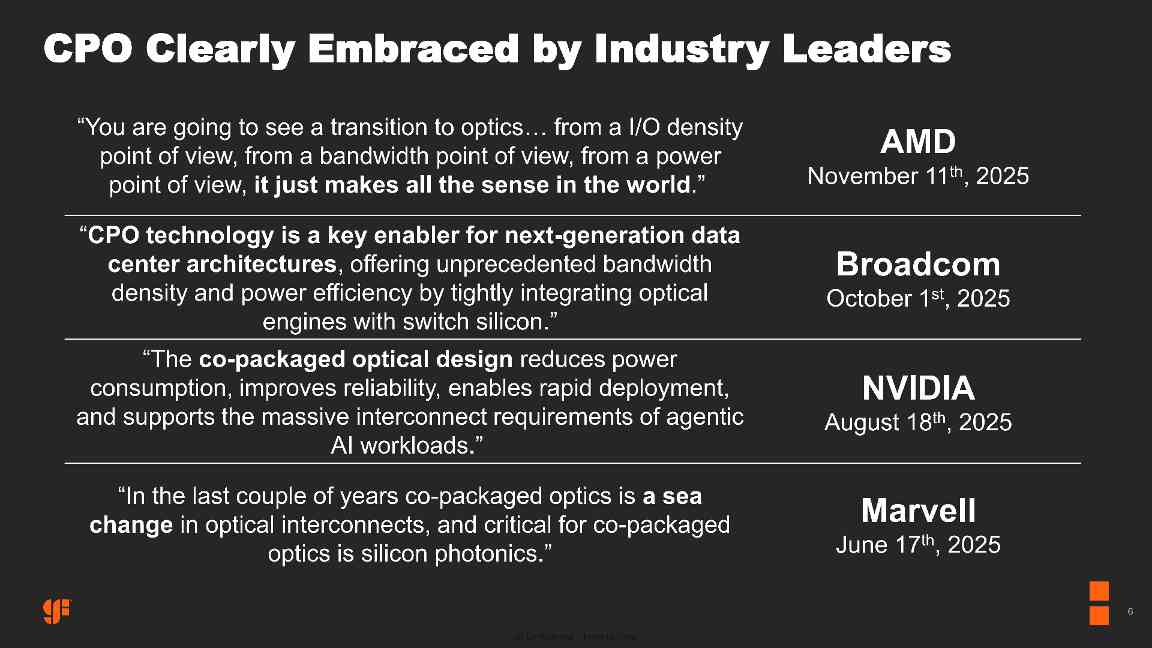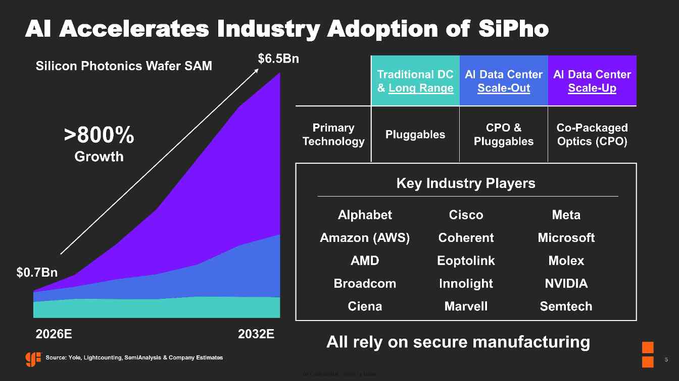格芯首席执行官蒂姆・布林(Tim Breen)表示:“硅光子技术对人工智能基础设施至关重要。随着数据传输速度加快、工作负载愈发复杂,以更快速度、更高精度及更优能效传输信息的能力,已成为人工智能数据中心及先进电信网络的核心需求。收购 AMF 将使格芯能够为可插拔光模块及共封装光学器件提供更全面、更具差异化的十年期技术路线图,同时推动光子技术向汽车、量子计算等相邻市场拓展。”