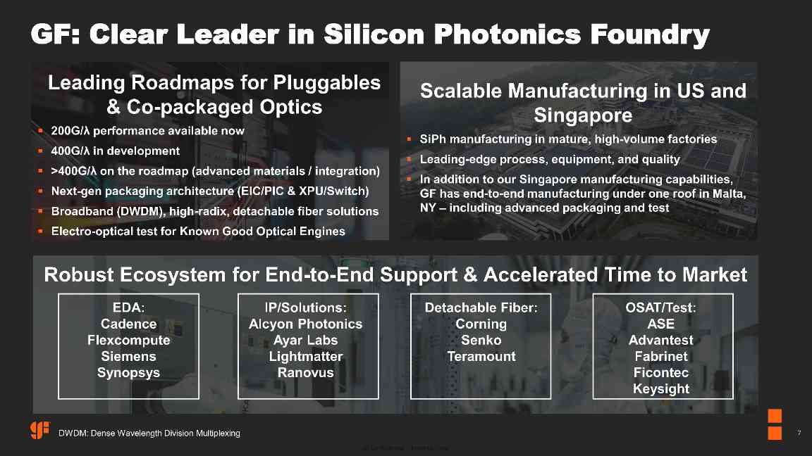 格芯对 AMF 的收购将整合 AMF 的制造资产、丰富的知识产权及专业人才,大幅拓展格芯的硅光子技术版图,并助力格芯成为按营收计算全球最大的纯硅光子代工厂商。依托 AMF 超过 15 年的制造经验,格芯将在新加坡利用 AMF 的 200 毫米平台,满足长途光通信、计算、激光雷达(LiDAR)及传感领域的需求;同时计划随市场需求增长,将平台规模扩展至 300 毫米,为人工智能数据中心、通信及下一代应用提供稳定的全球供应链支持。