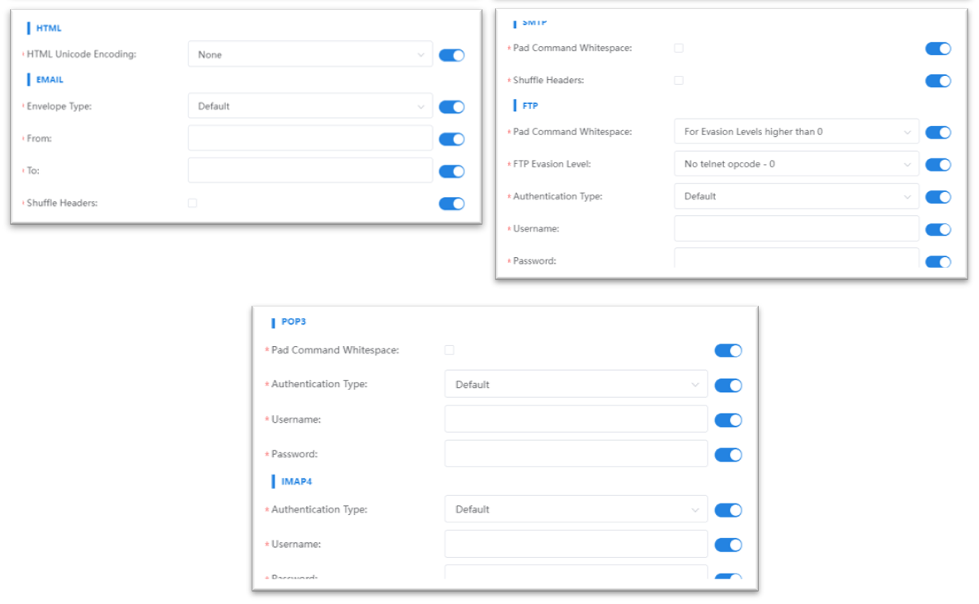 • 多维度逃逸模型配置:用户可在测试用例中灵活配置逃逸模型,支持多种逃逸技术的叠加使用。例如,可以构造"SSL加密 + TCP分片 + HTTP混淆"的复合逃逸攻击,真实模拟高级攻击者使用的躲避手法。