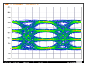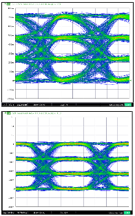 眼图对于评估功能响应的影响非常重要,通常使用毫米波通道数据(显示损耗、相位斜率和结构)来计算对数字信号的影响,这也是网络分析过程的一部分。图1显示了通过145 GHz EO/OE路径的56 Gbaud/s PAM4信号的示例眼图,以及没有EO/OE系统的本地响应。请注意,此图中的垂直比例不同,净损失未得到补偿。光路的衰减在145 GHz时并不极端,因此该信号的眼图失真适中。