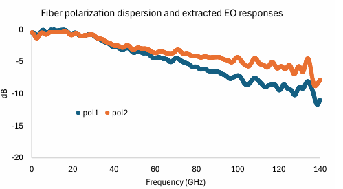 在较高的数据速率下,有时光学组件的带宽特性会有所贡献。一个例子是保偏光纤,其中光载波上的两个射频调制边带可能会看到不同的相位速度,并且这种差异随着调制速率的增加而增加。当这些边带在(非线性)光电探测过程中重新组合时,相位差可以转换为振幅差。光纤色散的变化可能伴随着连接过程、施加的机械应力的变化或看似无害的光纤替代。图10显示了一个示例,显示了射频带宽的变化。