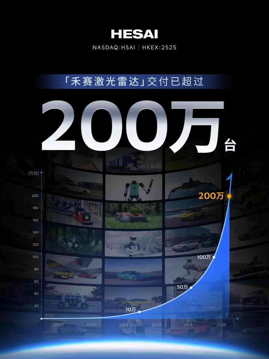 禾赛科技 CEO 李一帆表示:“这都是令人振奋的里程碑。创业 11 年来,禾赛用 200 万台最优秀的产品,始终陪伴自动驾驶和机器人领域的客户共同成长,持续为行业提供最可靠的三维感知能力。回望五年前,禾赛每季度交付不过千台,而下个季度禾赛预计交付量将超 60 万台,实现了近 600 倍的规模增长。面向未来,禾赛将继续向着更高的量产和交付目标迈进,继续用安全和智能为汽车和机器人行业深度赋能。”