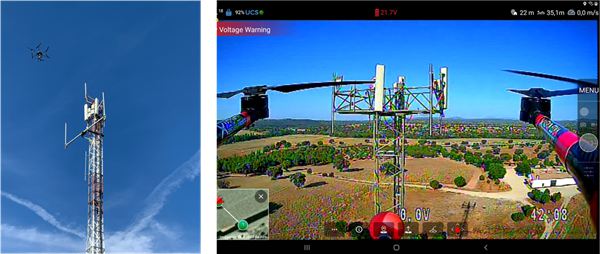 图 2 显示了测量期间现场的照片,飞行中的无人机瞄准一个基站扇区的天线。乡郊地区的天线通常有几十米高,地面操作员随时监控无人机的位置。正如照片所示,无人机悬停在距离天线仅几米的地方,方向与天线垂直。