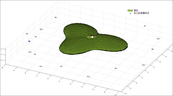 图 4 显示了仿真软件生成的禁区,以及使用无人机上 VIAVI 测试仪的测量点。