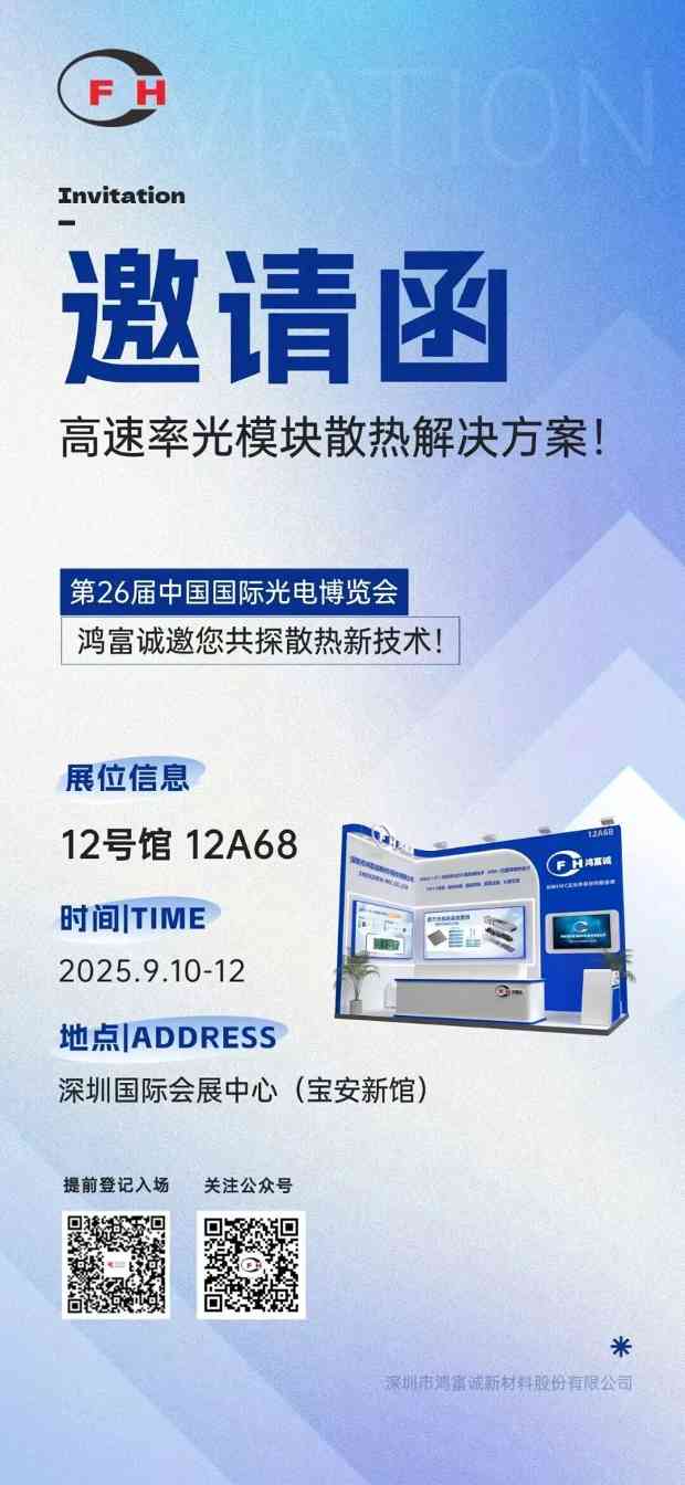 展会还在继续,9.10日-12日,欢迎莅临鸿富诚展位(12号馆,展位号12A68)。这里不仅展示着当下最新的热管理技术,也预演着未来AI计算、高速通信时代散热解决方案的发展新动向。