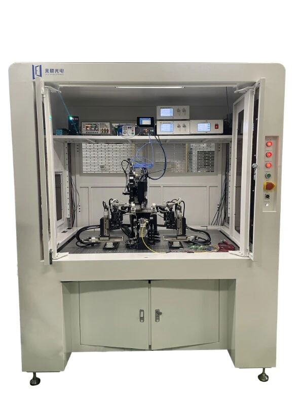 Y波导自动耦合设备是一款专为集成光学Y波导组件设计的高精度自动化系统,通过三组六轴精密电动位移台,与实时光功率及消光比值的反馈,实现保偏FA与Y波导芯片的快速自动对准与耦合,并能够进行自动点胶及UV固化。该设备支持偏振态优化、多通道同步校准,可适配多种Y波导结构(如铌酸锂或硅基波导)。本设备可大幅提升生产效率及生产一致性,适用于硅光、薄膜铌酸锂等多种材料。