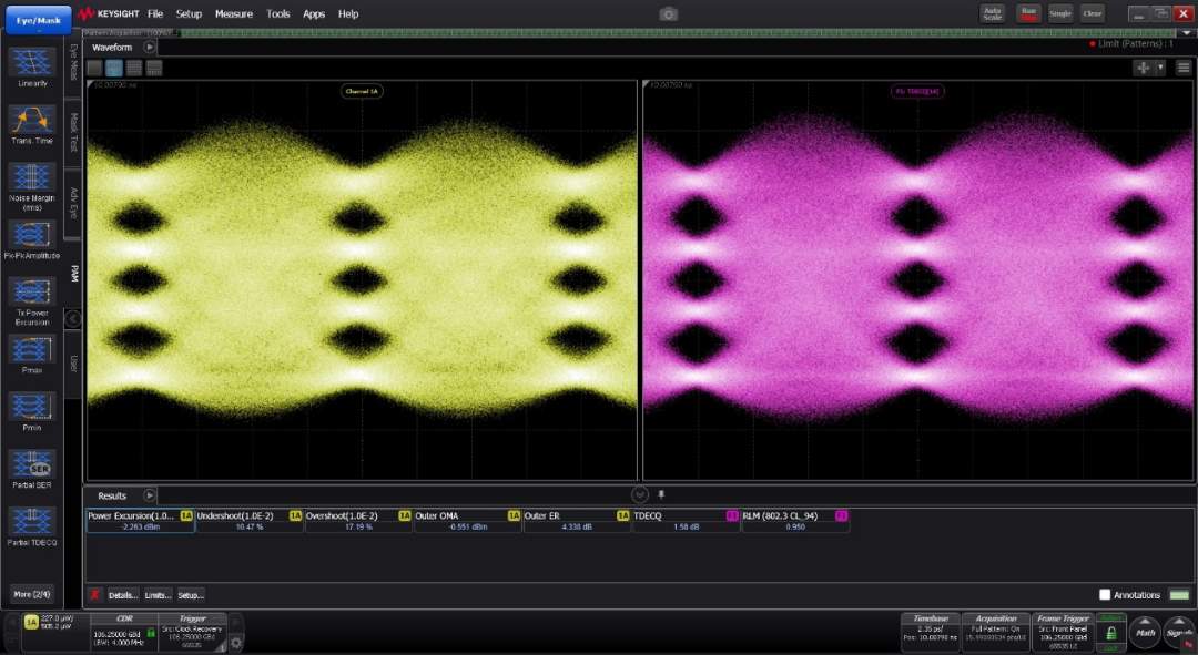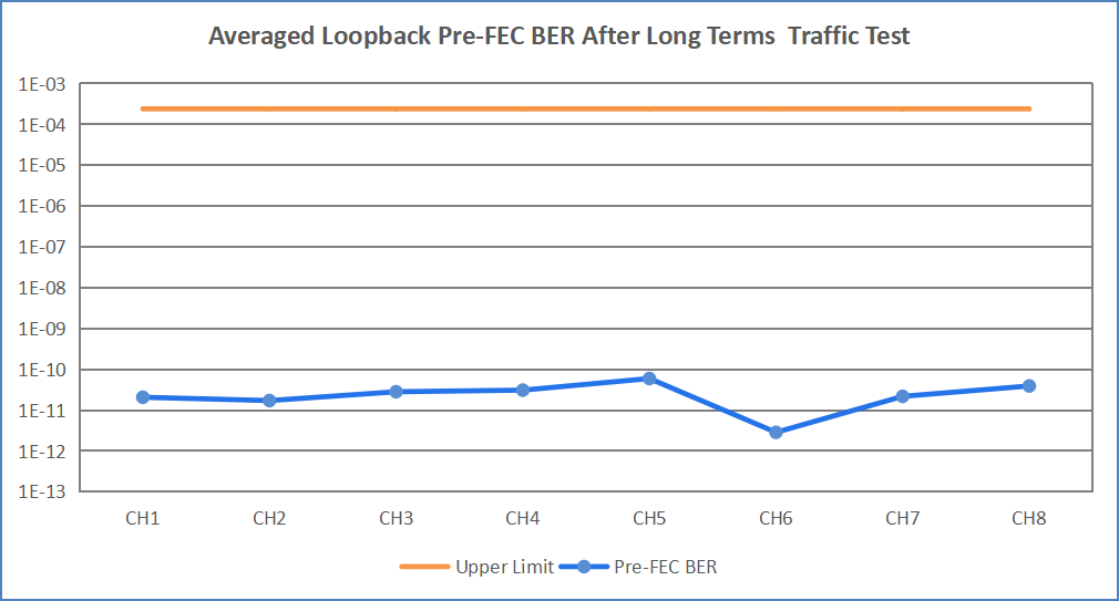 产品展现出良好的纠前误码率(Pre-FEC BER 达到E-11量级)水平,及优于行业标准的TDECQ,为客户构建稳定可靠的光互连网络提供坚实基石。