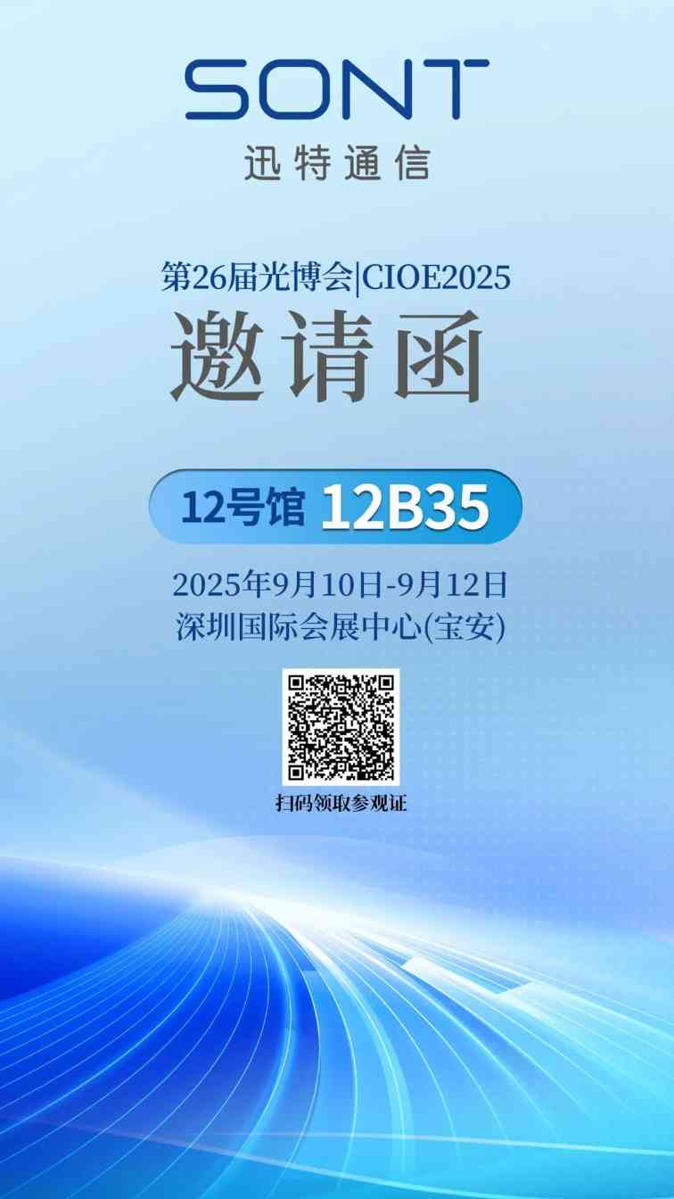 2025年9月10日至12日,迅特将在深圳举行的中国国际光电博览会上演示1.6T新品,诚挚邀请全球客商莅临#12B35展位,了解更多产品的信息。