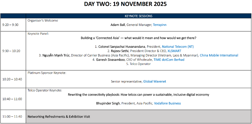 随着我们朝着真正的数字经济迈进,世界正在发生变化,电信行业正处于其中心位置,据数据显示,电信数字化将带来2万亿美元的机会,智慧城市的兴起和持续的城市化将为电信基础设施和运营商带来前所未有的需求。目前,泰国的电信业比较发达,泰国是东南亚最早大规模拍卖和部署5G的国家之一,目前各种形式的电信网络已覆盖全国各地,包括固定电话、移动电话、ADSL宽带互联网、卫星调制解调器及拨号入网服务等。本次会议,泰国主要的电信服务商CAT、TOT以及民营的AIS、DTAC、TRUE都会参会,一起探讨电信行业最新的发展趋势和机会。
