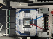 另一款参展的CPO光纤基础实例是来自Mixx Technologies公司的基于GPU的互连系统。该系统的面板上配置了MMC连接器和可插拔激光源,采用密集排列的单模光纤与保偏光纤的混合架构,并配备了光纤管理托盘,确保光纤的配列方式便于后期维护。康宁已在多个数据中心及电信网络环境中成功部署大量高密度光纤基础设施,凭借丰富的经验和专业知识,能够确保这些系统实现稳健的规模化部署。
