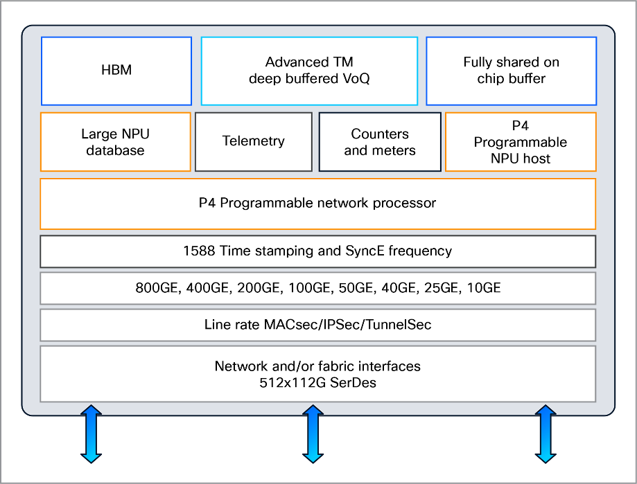 Cisco Silicon One P200 可以构建各种产品,涵盖固定外形路由器和交换机、模块化机箱路由器和交换机以及多 PB 级分解路由器和交换机。