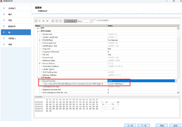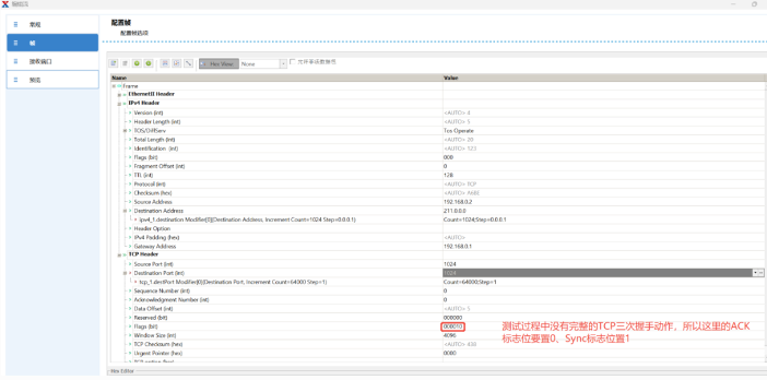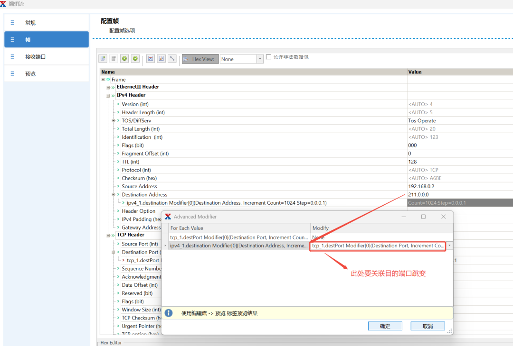 创建用户侧到网络侧的上行流量,添加UDP/TCP头,设置源端口跳变,使每个用户打满端口块,实现最大并发session数测试: