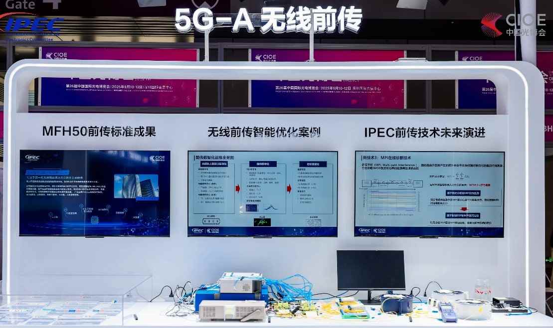 立足5G-Advanced网络演进需求,IPEC展示了MFH50前传光模块技术规范与适配成果。针对5GA基站互联场景,发布多厂商互通测试规范,明确光模块传输时延、抗干扰性等核心指标。现场通过典型前传数字化可视链路,验证了多厂商光模块的互联互通能力,并展示了多款具备OTDR功能的光模块,为运营商降低网络建设成本、提升运维效率提供标准化依据,进一步夯实5GA规模化应用的光互联基础。