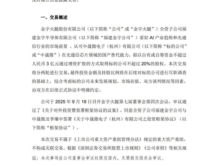 标的公司中晟微电子(杭州)有限公司前身为中晟微电子(南京)有限公司, 由数位美国光通信芯片设计公司核心研发人员于2019年归国在南京浦口高新区创立,于2024年由南京迁址至杭州萧山区。2024、2025年连续两年入选“中国未来独角兽TOP100”、“杭州准独角兽企业”榜单,是浙江TOP50最具投资价值创新企业。