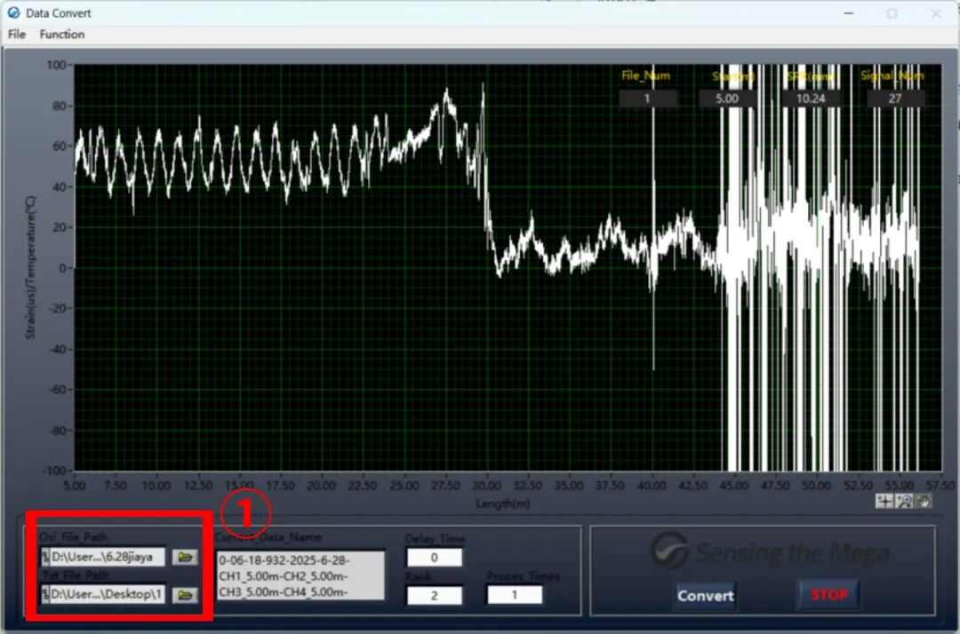 ①红框处上方为存放数据的待处理文件夹,下方为处理后数据的保存路径,均设置后点击convert即可等待数据转换完成,转换后数据打开如下图所示。
