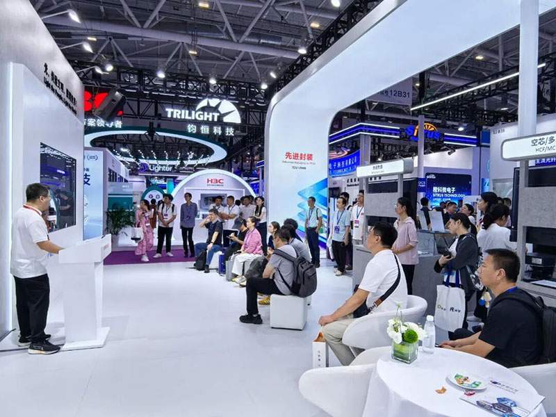 展会期间,凌云光展位每日两场主题技术分享轮番登场,吸引众多观众驻足聆听。每场演讲都直击行业核心挑战——从GPU集群带宽与时延瓶颈、硅光/InP封测与量产挑战,再到新型光纤的低损熔接与高精度测试等关键难点。专家们结合真实应用案例,深度解读RDCN光互联、先进封测、空芯/多芯光纤熔接测试方案如何提升算力利用率、提高封装良率、加速网络部署。现场气氛热烈,技术讲解与实物展示让复杂技术“看得见、听得懂、用得上”,帮助嘉宾形成更深层的认知与共识。