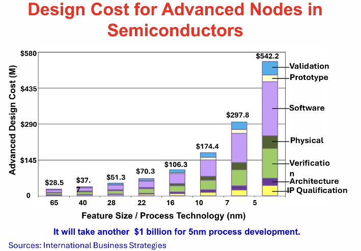 图4:随着半导体工艺节点的发展,设计成本的急剧增加,显示成本从65nm的2850万美元上升到5nm的超过5.4亿美元,使Chiplet方法从经济角度越来越有吸引力