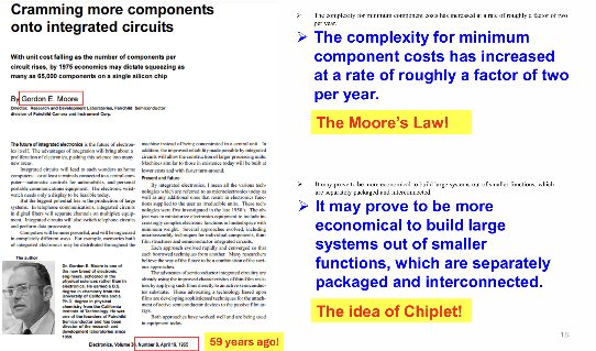 图3:戈登·摩尔在1965年关于从更小的、分别封装的功能模块构建系统的原始见解,证明Chiplet概念比其现代实现早了近六十年