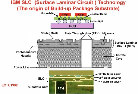 图9:显示构建封装基板的结构,说明实现高密度封装的多个层、微通孔和通孔互连