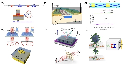 图1:硅基光电子偏振管理器件及其应用的整体概览,展示了偏振控制系统中各个器件的相互关系和应用场景