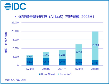 IDC表示,今年以来,行业关注重点已从大规模模型训练转向推理,上半年GenAI IaaS市场中,推理场景占比上升至42%,训练场景占比则降低至58%。一方面,年初DeepSeek事件带来的积极影响在上半年已基本兑现,央国企、政府等行业的DS部署高峰已接近尾声;另一方面,行业龙头企业开始在自身业务系统中,尝试生成式AI应用的 PoC 验证与小规模部署。预计未来,随着企业内部多模态生成与实时推理场景的持续丰富,推理基础设施将随着AI Agent市场的发展成为AI IaaS的核心分支。