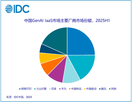 从市场格局来看,受生成式AI及大模型在训推场景的算力需求驱动,上半年GenAI IaaS市场占比持续攀升至84%,Other AI IaaS市场占比仅剩16%。当前GenAI IaaS市场格局已基本收敛,市场集中度进一步提升。