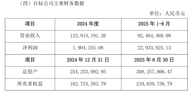 公告同时称,该笔收购要求业绩承诺,控股股东、实际控制人承诺,目标公司2025-2027年度预计分别实现净利润不低于人民币2,800万元、3,600万元及4,820万元,合计不低于人民币11,220万元,最终的承诺净利润数额以评估机构出具的评估报告载明的目标公司