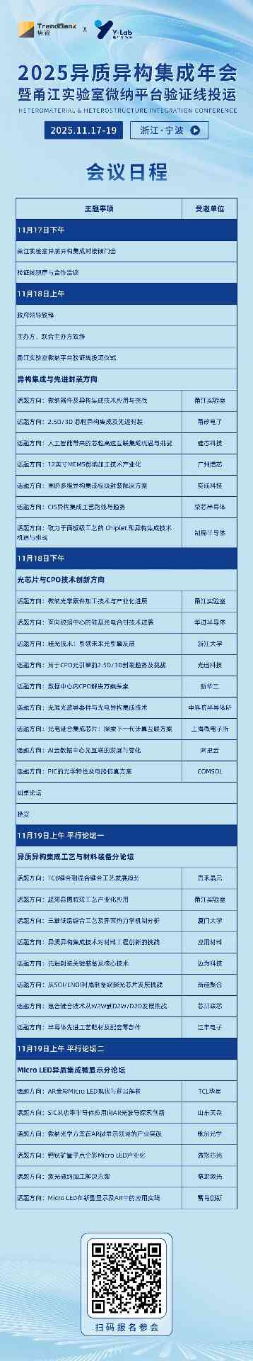 同期,甬江实验室信息材料与微纳器件制备平台8英寸验证线也将举行投运仪式并开放参观。若有兴趣可扫码进行登记,届时将有专人进行联系。